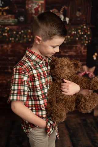 Beary Merry Christmas Boys Tartan Plaid Shirt- ** Pre-Order ETA Early-Mid Nov.**