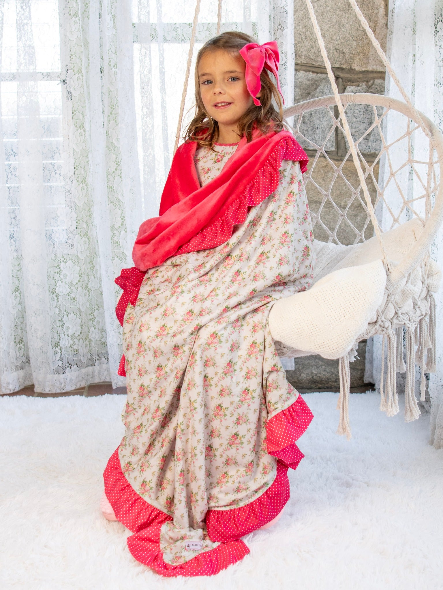 Wrap your little one in the ultimate comfort with this luxuriously soft 60" x 60" blanket, made from our signature buttery-soft lounge fabric on one side and soft and cozy minky on the the underside. Featuring a gorgeous floral bouquet print and delicate ruffled edges, this cozy blanket is perfect for snuggles, naps, and make the perfect gifts!