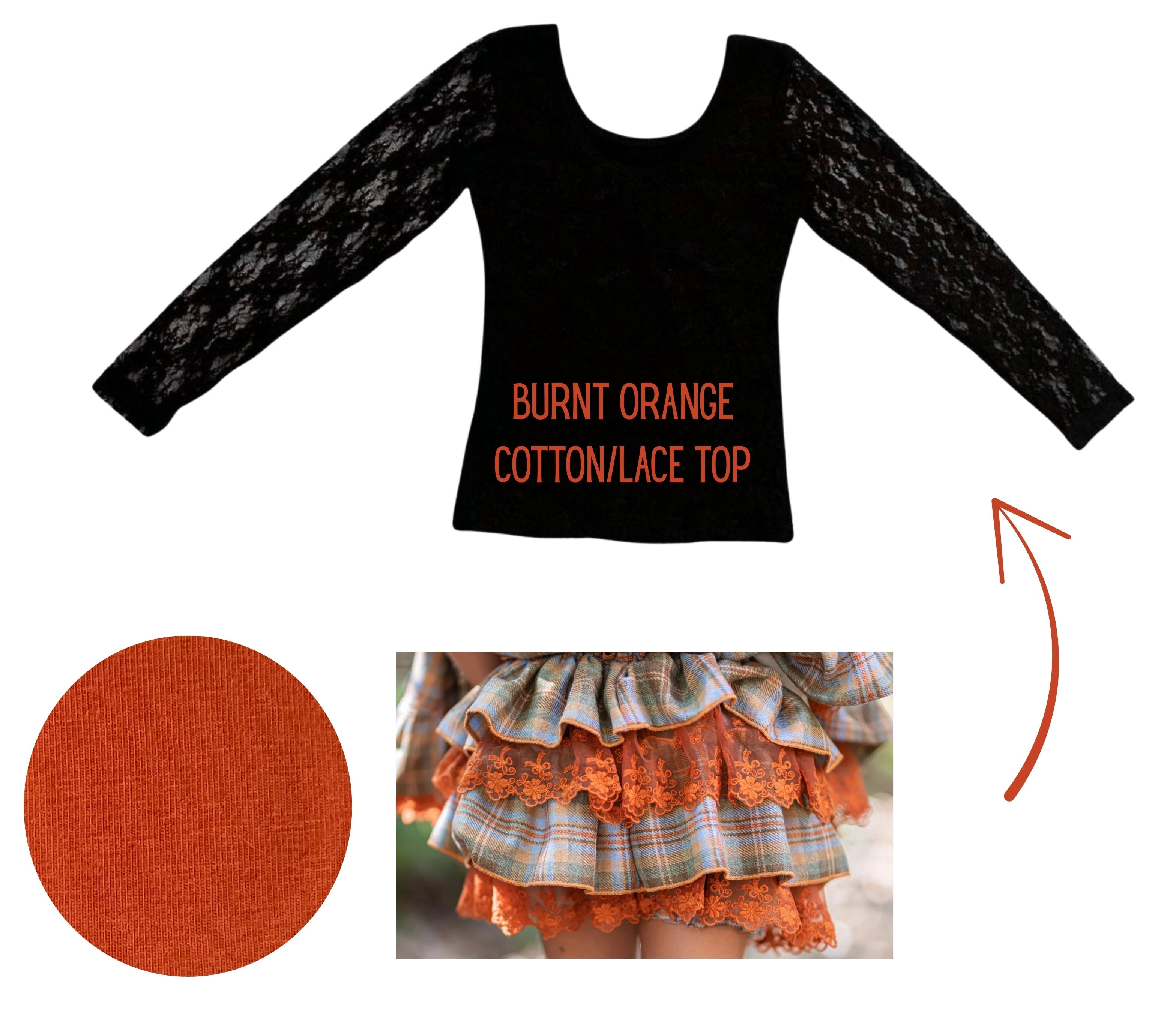 Burnt Orange- Cotton Lace Long Sleeved Top