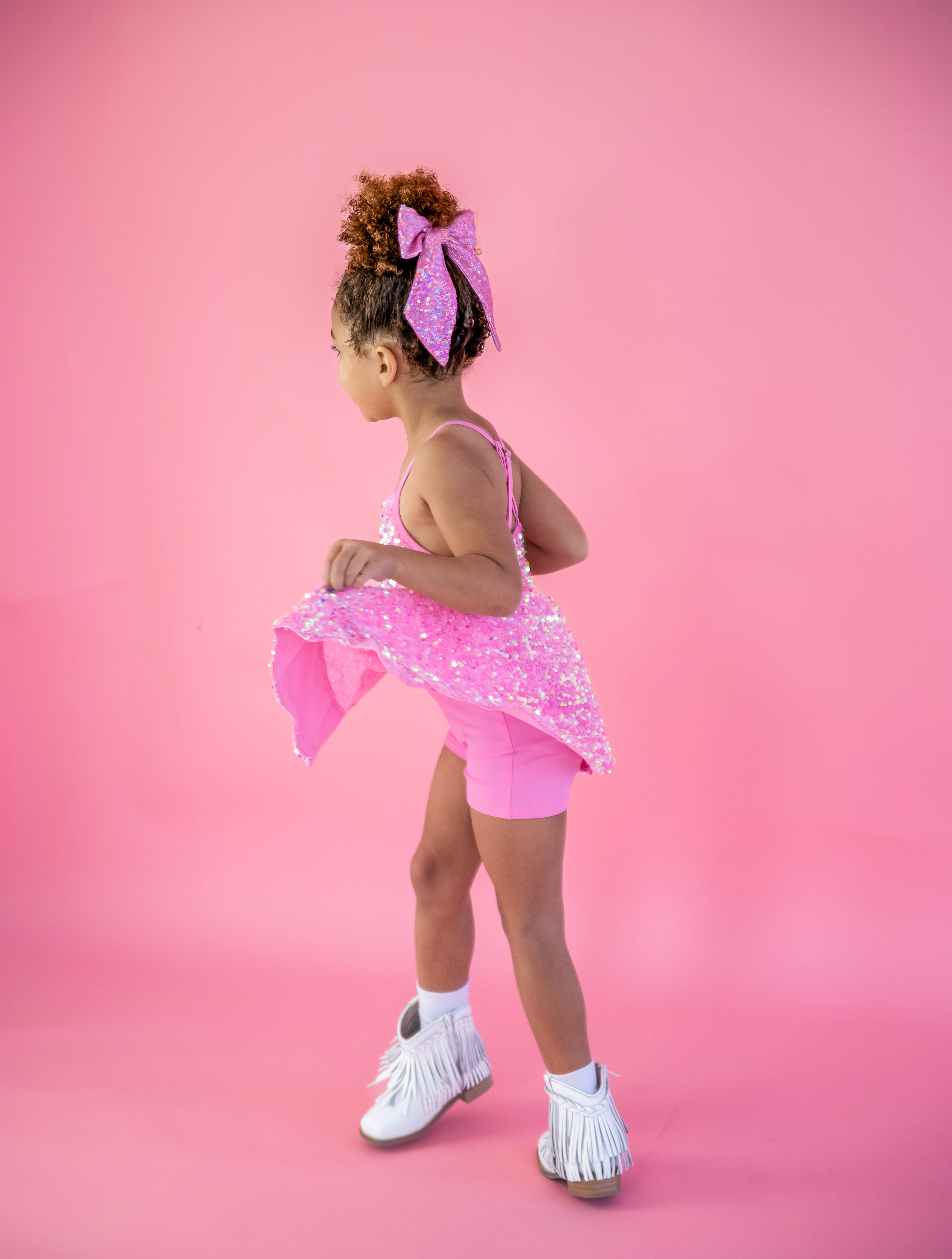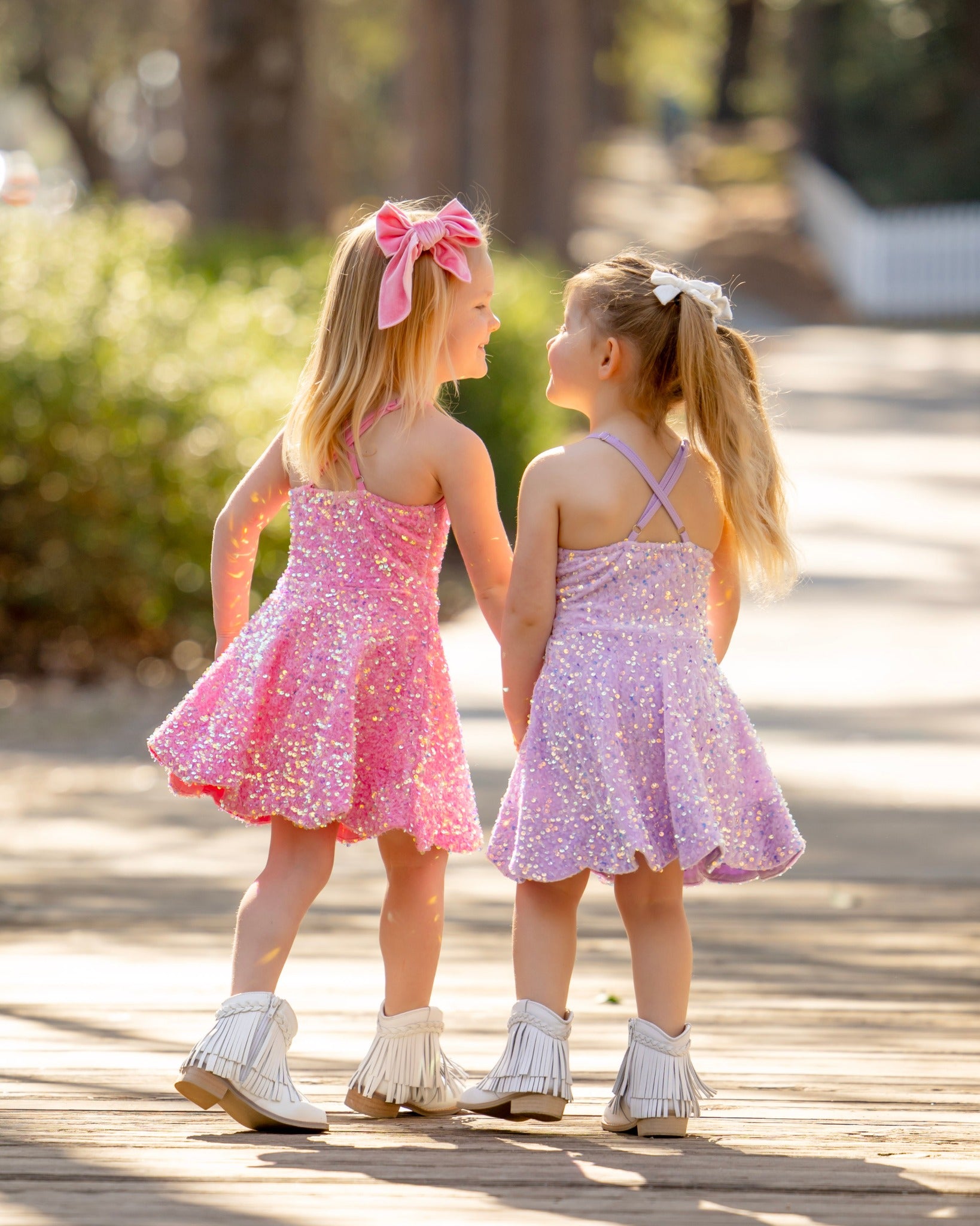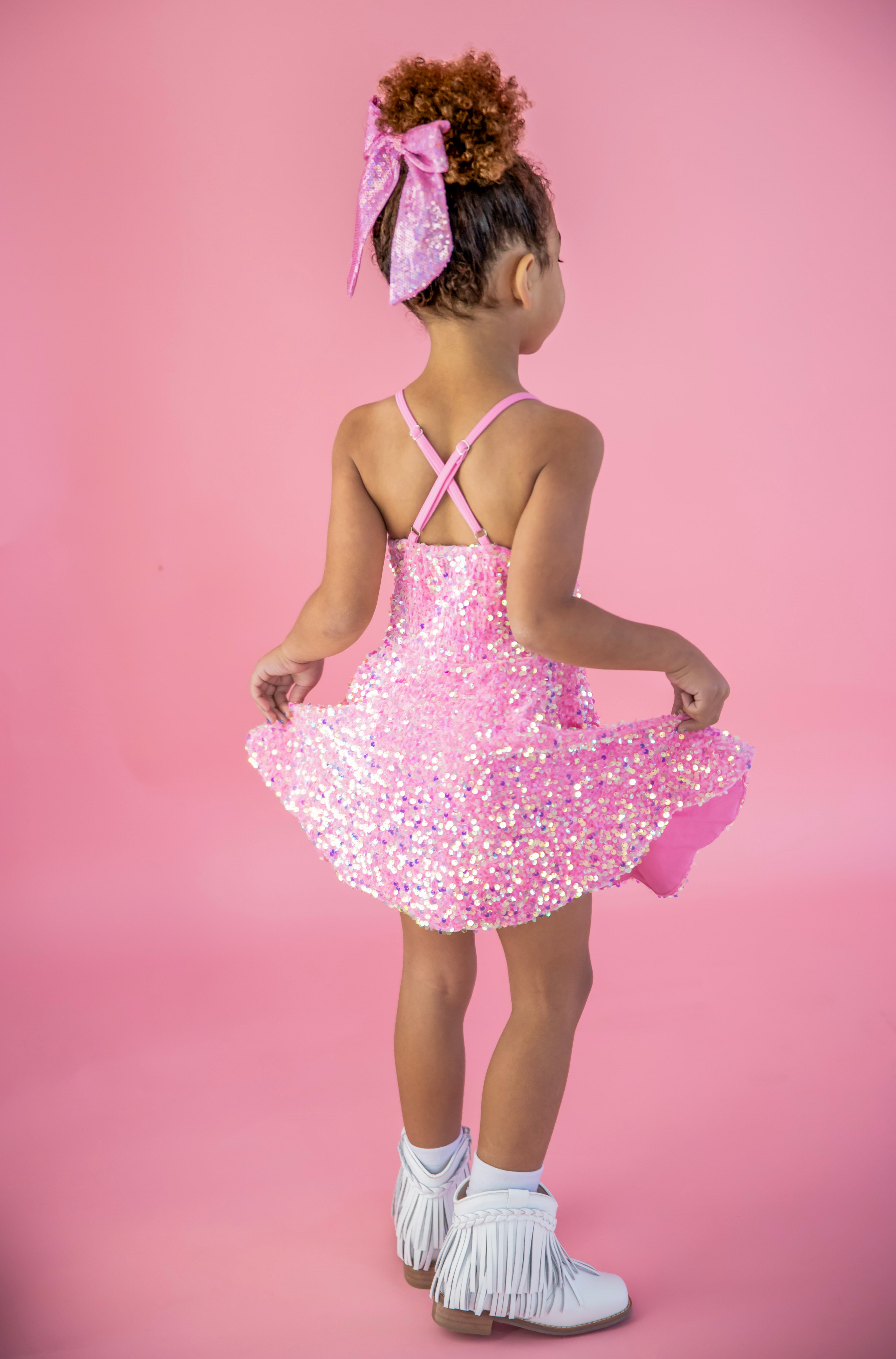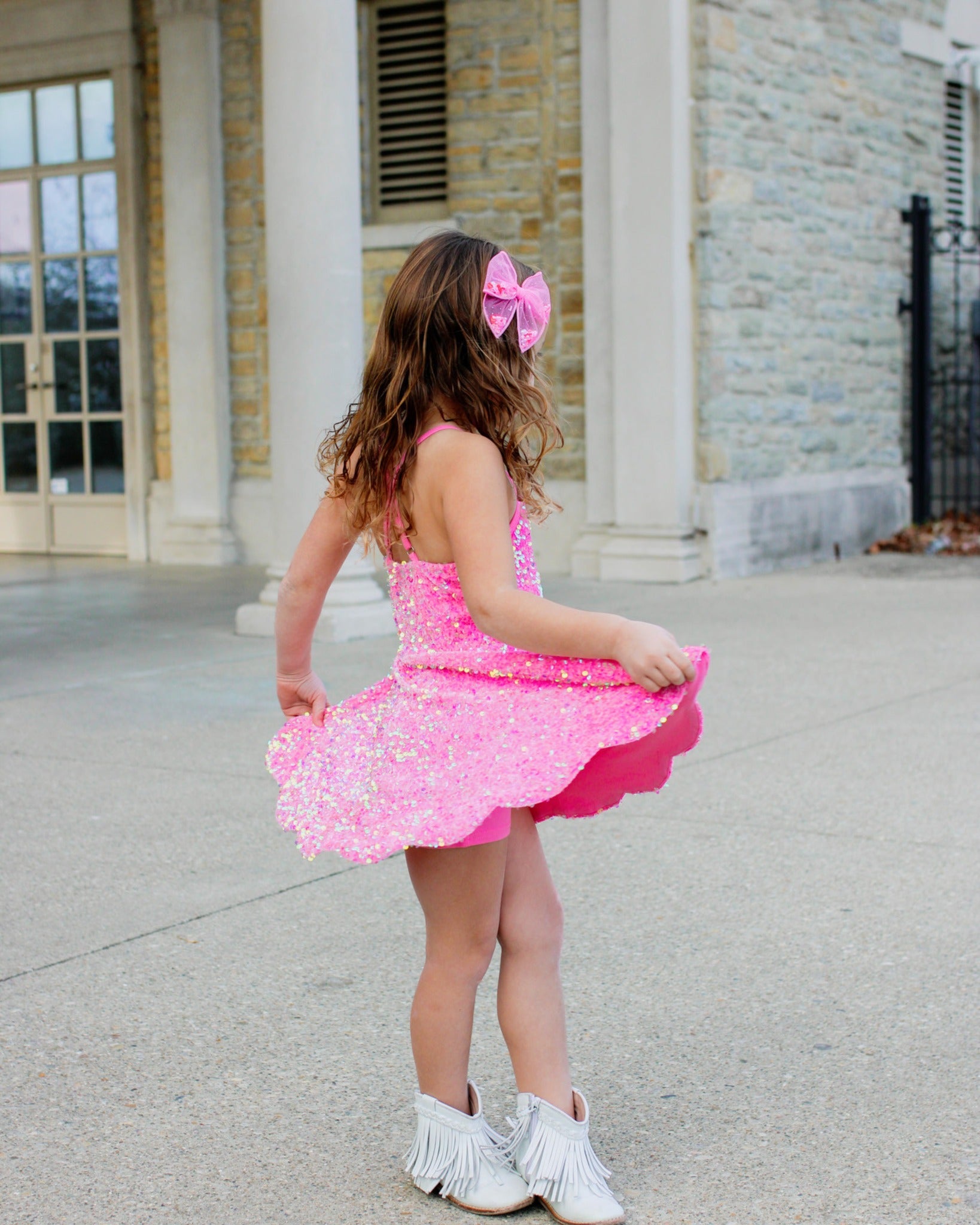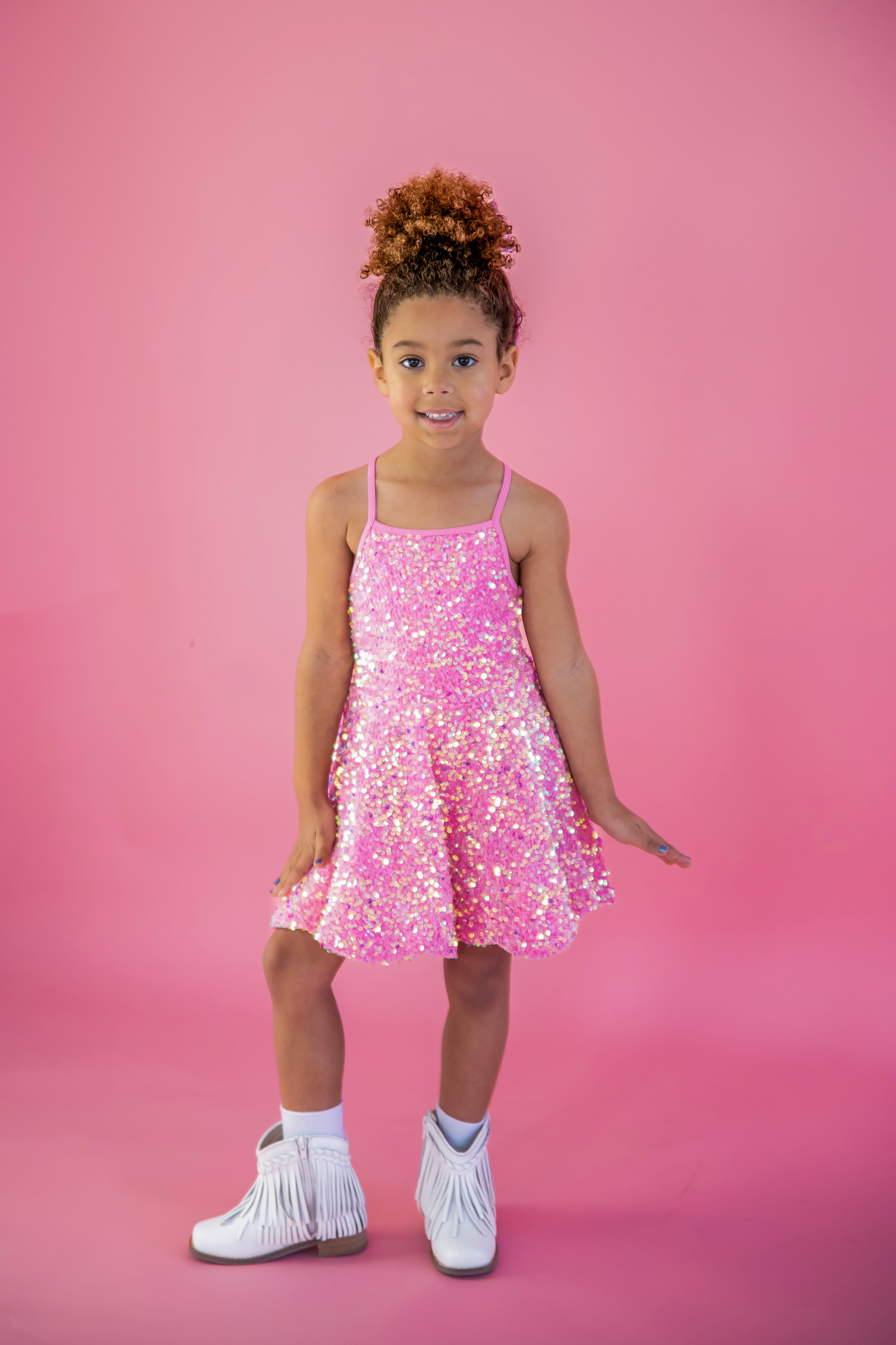 Pink- Sparkle & Shine Scalloped Sequin Skort Dress