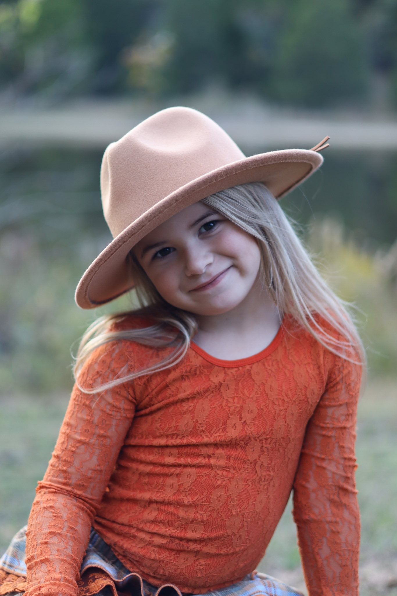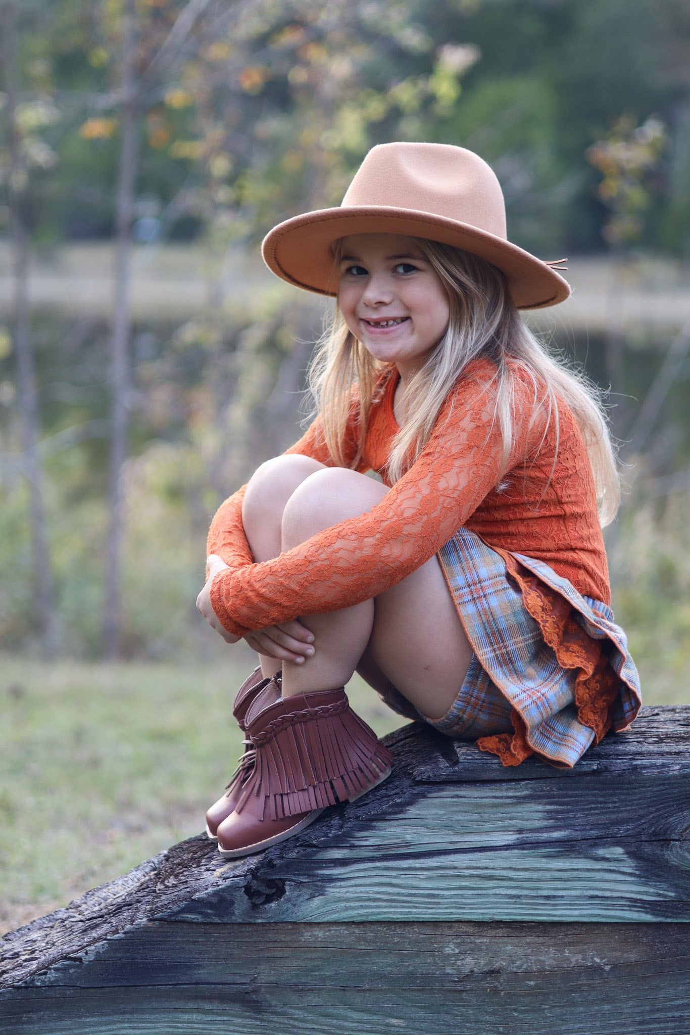 Burnt Orange- Cotton Lace Long Sleeved Top