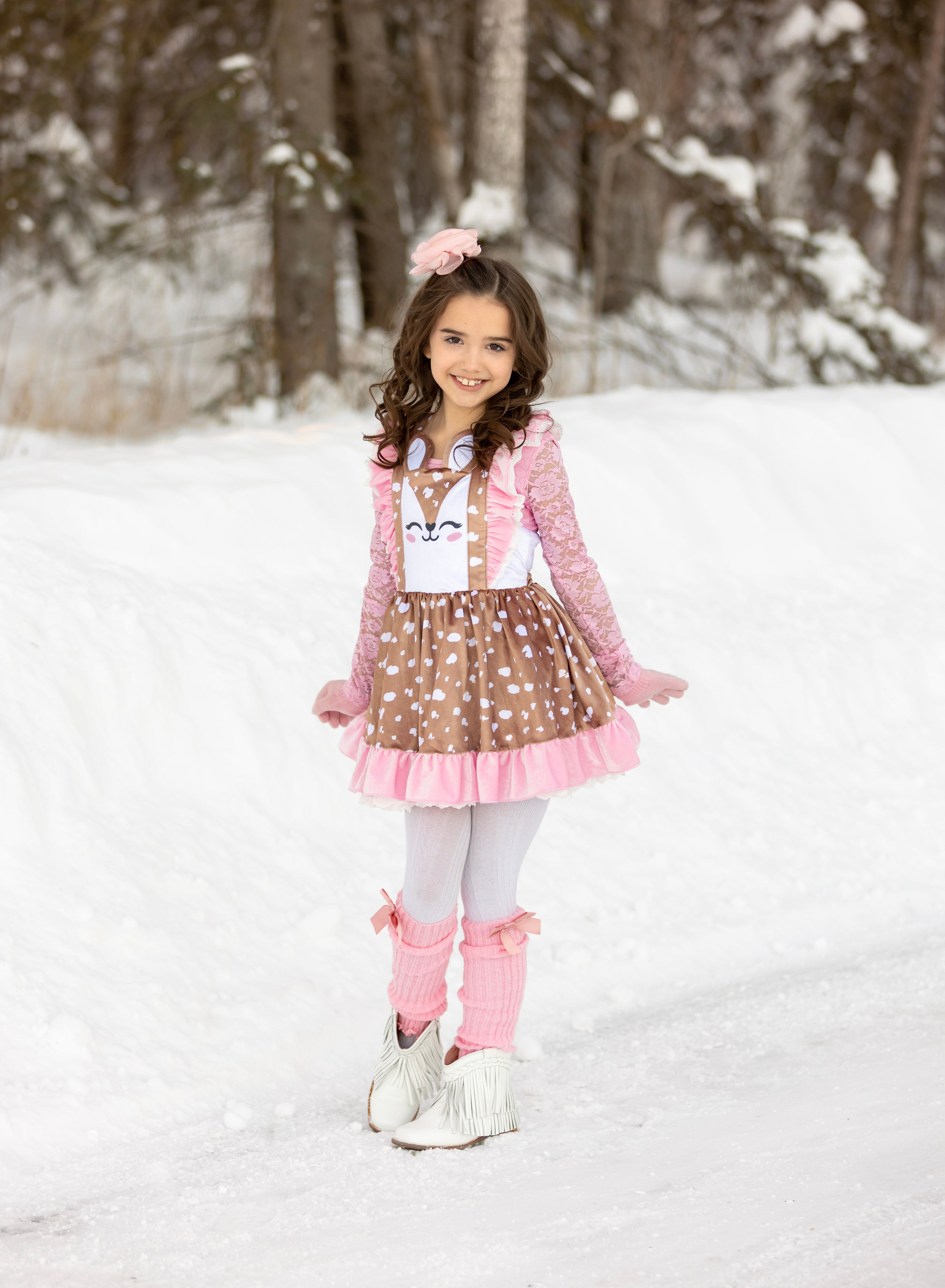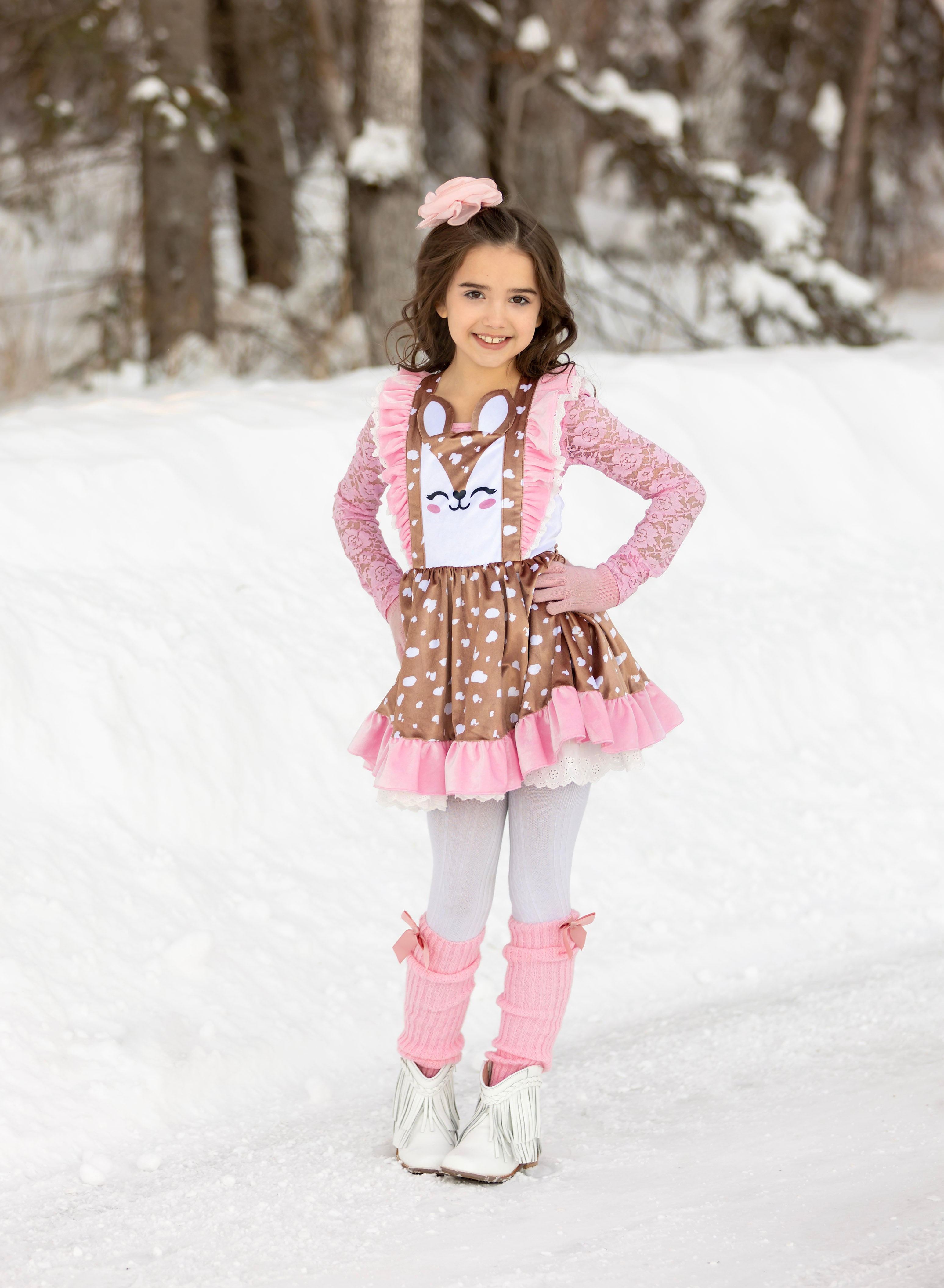 Love Me Deerly Velvet Pinafore Set- Ready to Ship!