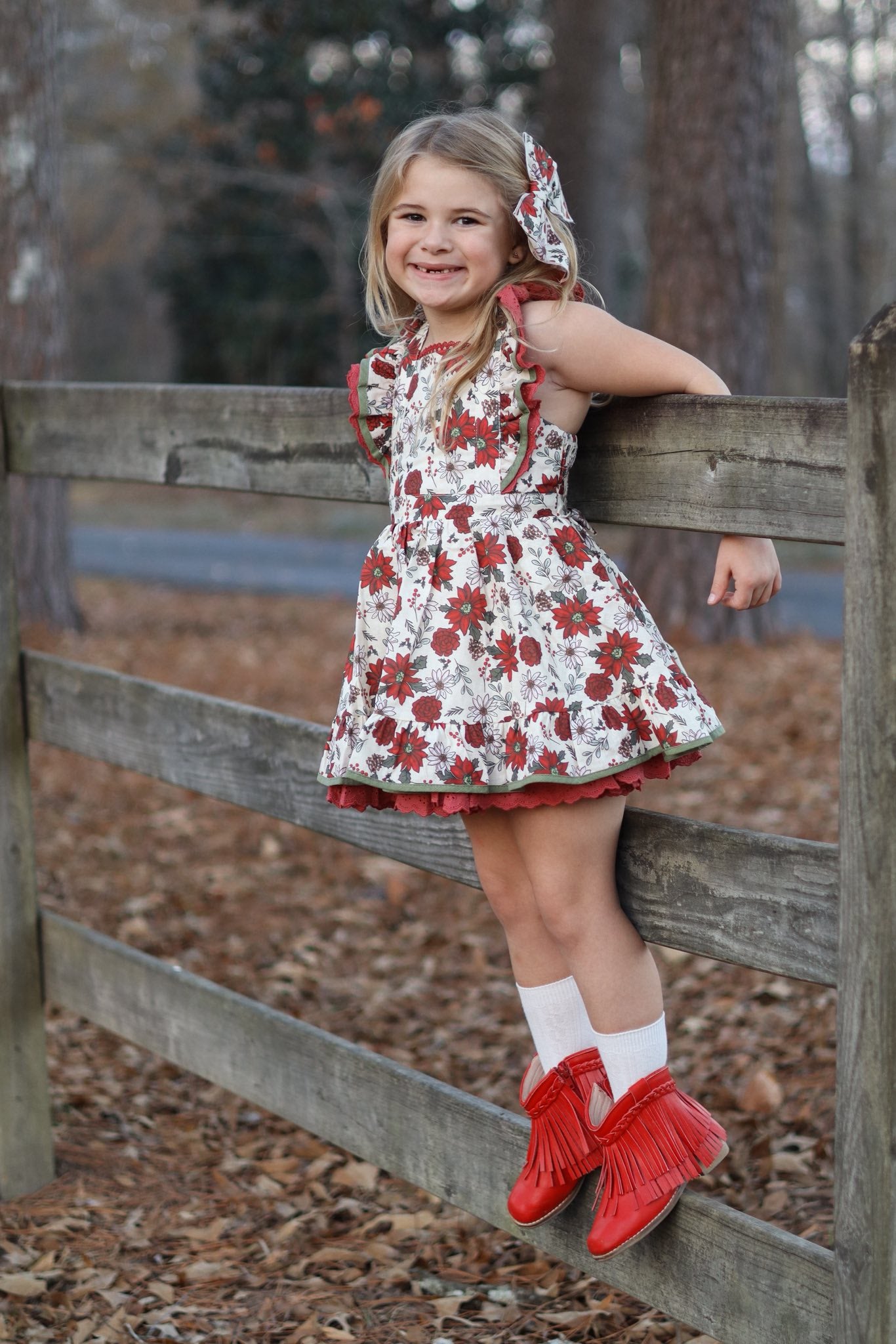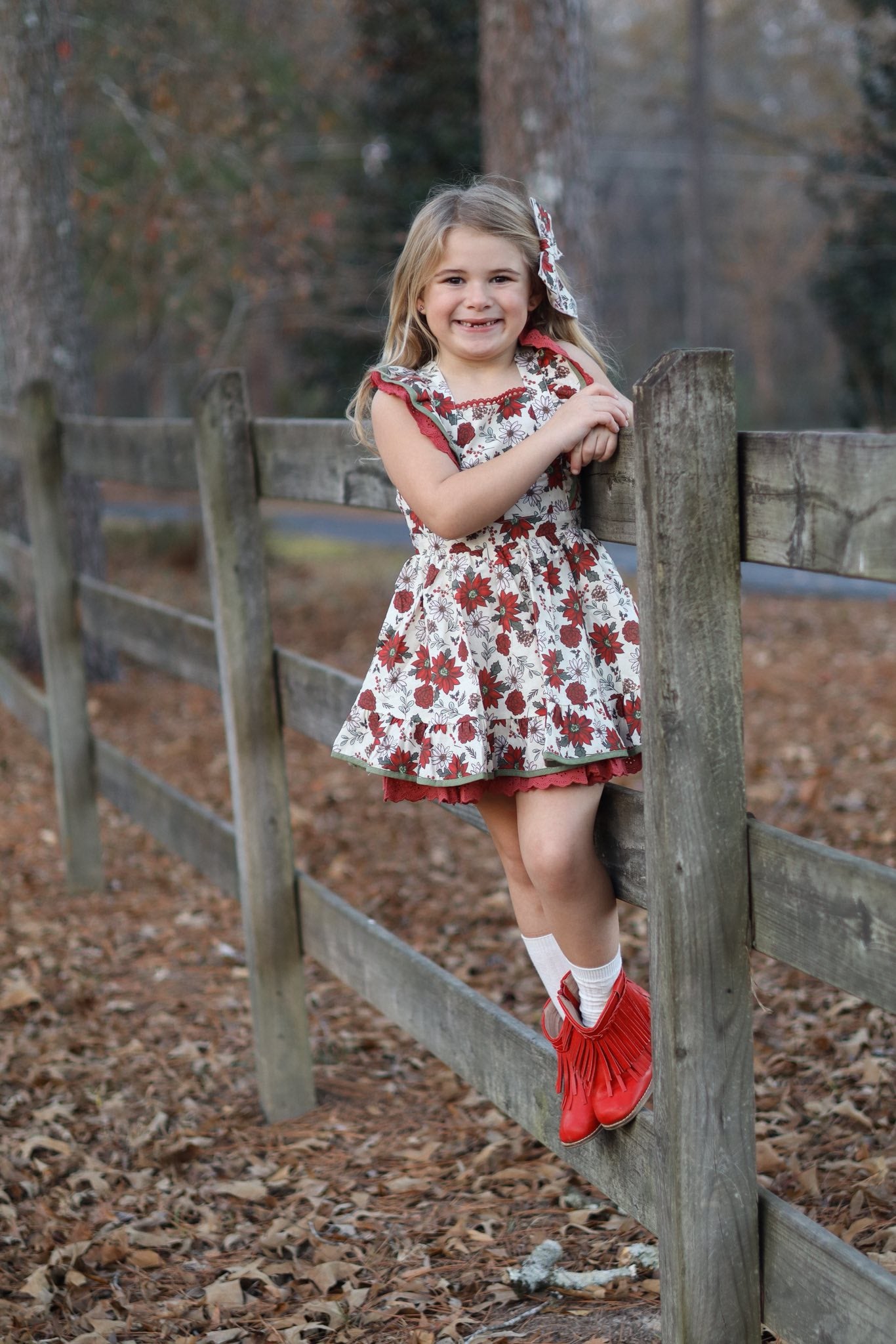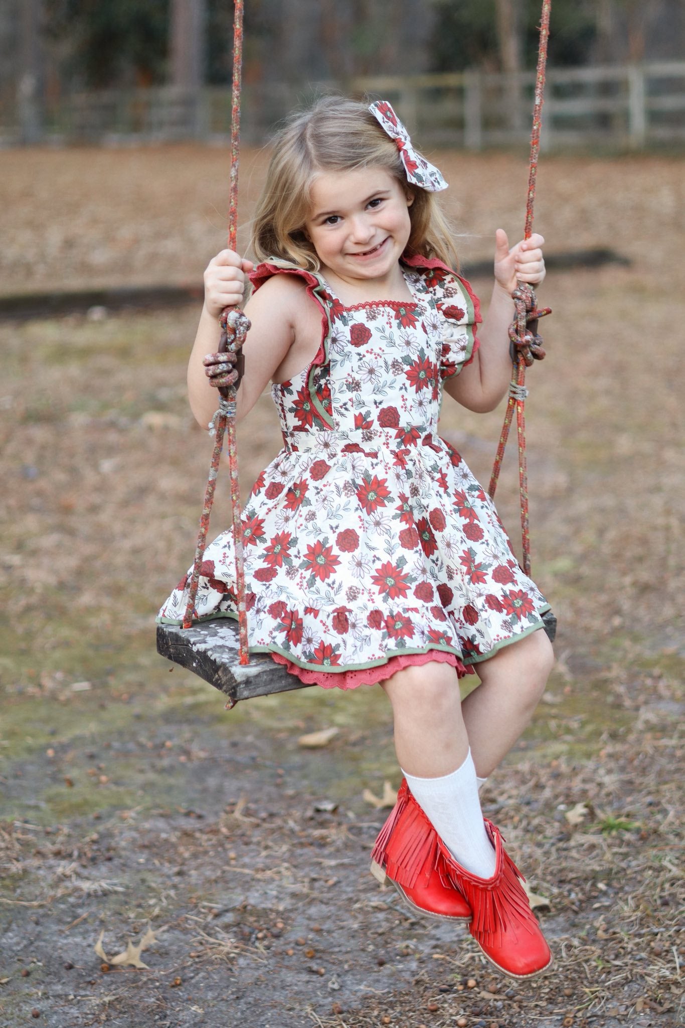 This dreamy holiday look features a pinafore adorned with hand-dyed lace, layered trims, and sweet festive details. ✨