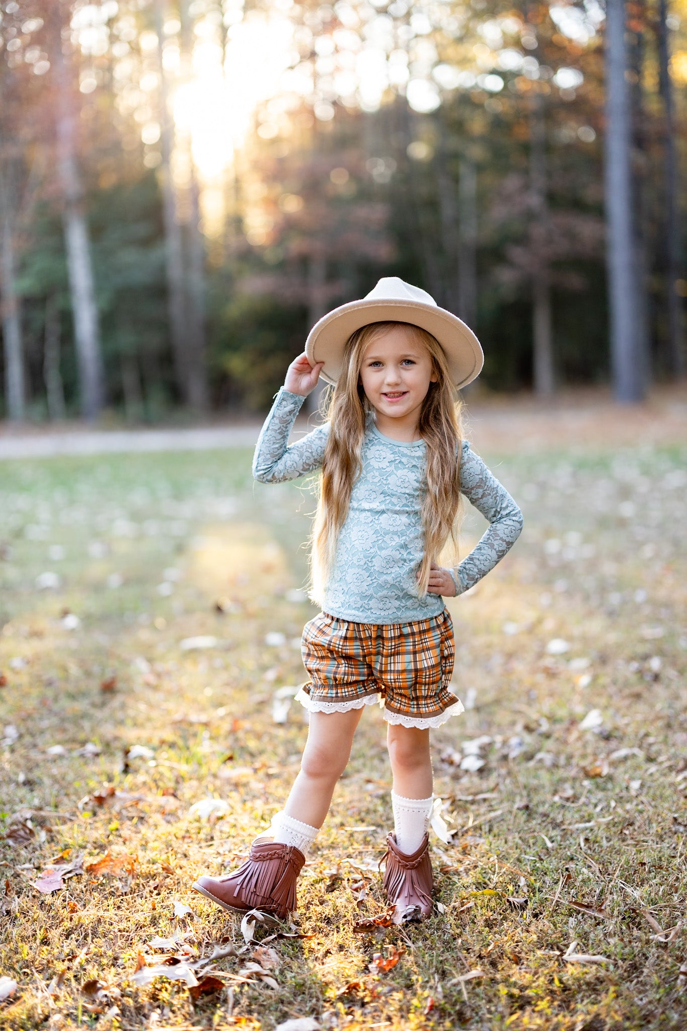 Pumpkin Pie Collection Blue Cotton Bodice Lace Top- Ready to Ship