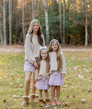 Cozy Sweater & (Plum) Gingham Activewear Skort Set -Ready to Ship
